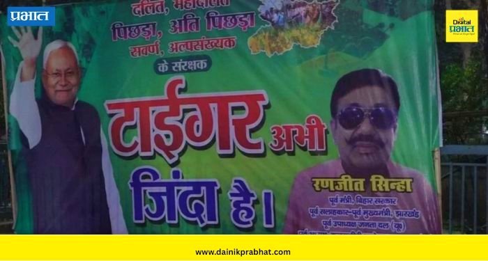 Bihar Election Results 2025। बिहार विधानसभा निवडणुकीच्या निकालापूर्वीच, समर्थकांनी पाटणा येथील जेडीयू कार्यालयाबाहेर मोठे पोस्टर लावले आहेत. या पोस्टरवर, “टायगर अभी जिंदा है…” असे लिहिले आहे. बिहारचे मुख्यमंत्री नितीश कुमार यांचे मोठे चित्र देखील पोस्टरवर लावले आहे. बिहार सरकारमधील माजी मंत्री रणजित सिन्हा यांनी हे पोस्टर लावले आहेत. पोस्टरवर असेही लिहिले आहे की, “दलित, महादलित, मागासवर्गीय, अत्यंत मागासवर्गीय, उच्च जाती आणि अल्पसंख्याकांचे रक्षक – “टायगर अभी जिंदा है….”